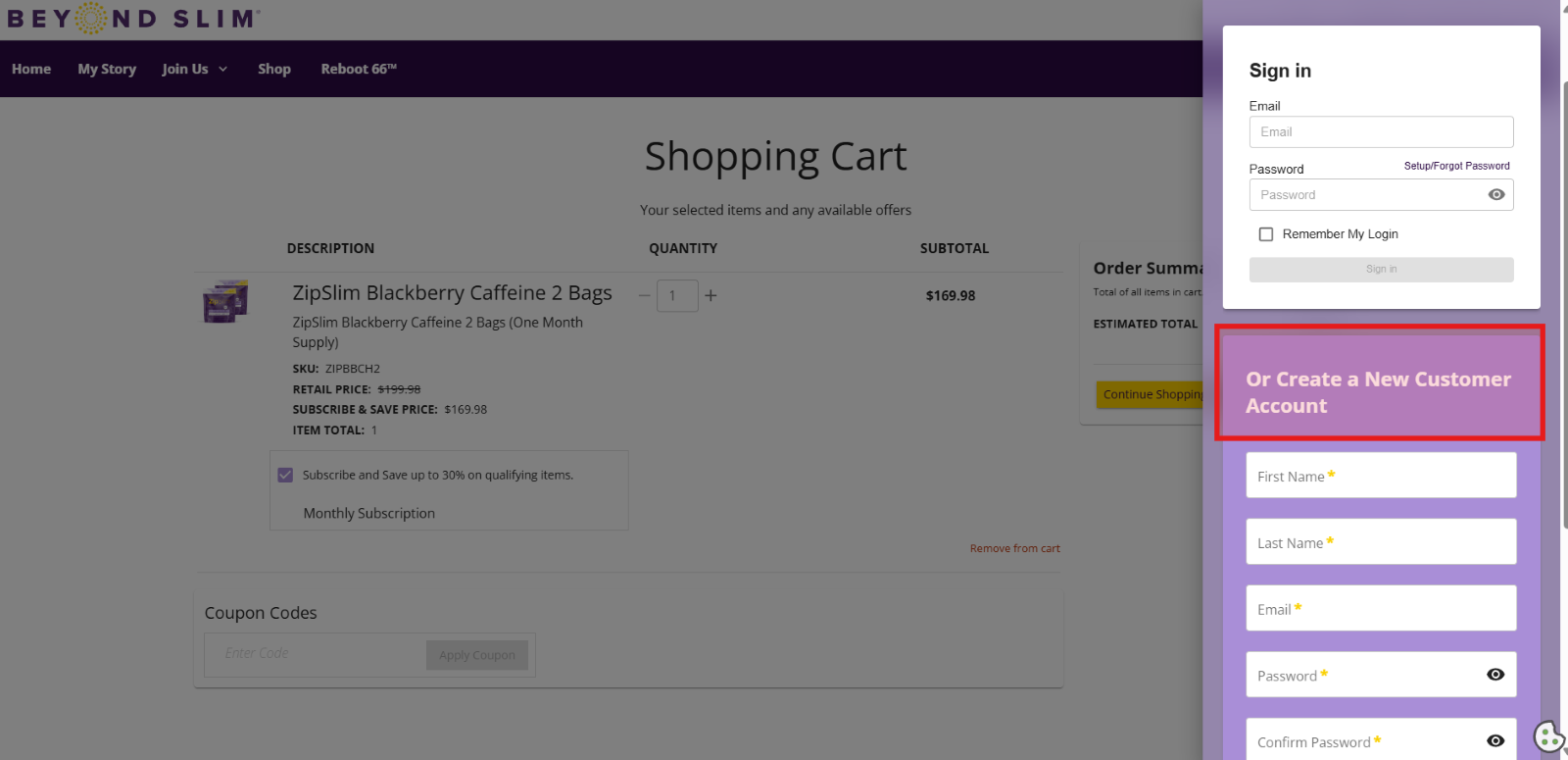 Upon clicking the Checkout button, you will be prompted to Sign In to your account or Create a New Account. Scroll down to create your personal account if you have not made one already!