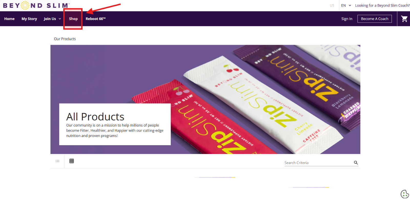 Please follow the link provided to you by the Coach or Affiliate who referred you to Beyond Slim. Once you have reached their personal site, you can select the Shop option and begin adding your preferred items to your cart.